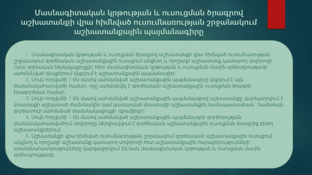 1. Մասնագիտական կրթության և ուսուցման ծրագրով աշխատանքի վրա հիմնված ուսումնառության