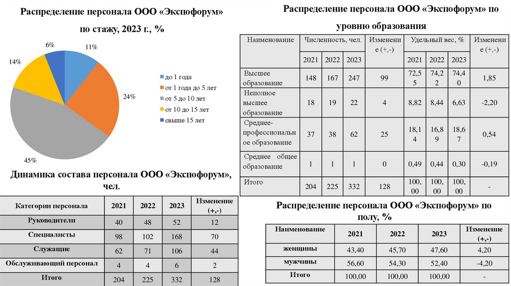 персонала с выявлением причин и закономерностей в динамике показателей,