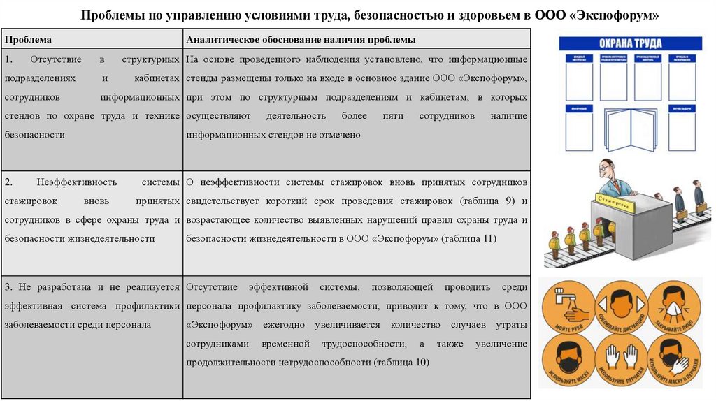 Проблемы по управлению условиями труда, безопасностью и здоровьем в ООО «Экспофорум»Проблема