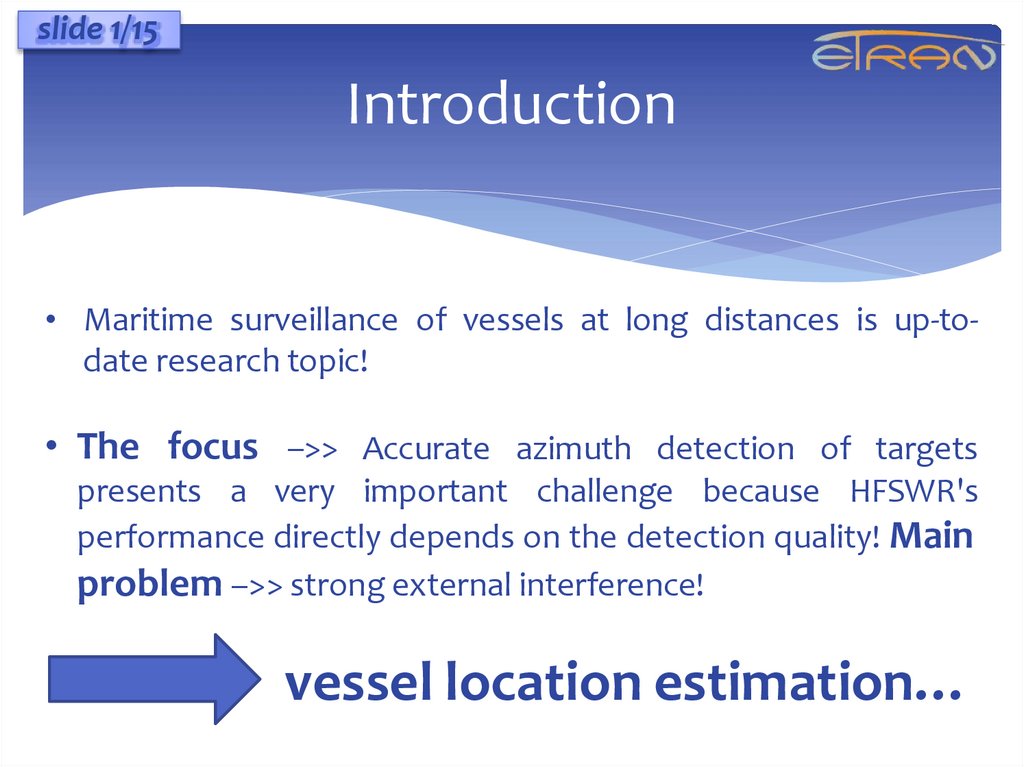 • Maritime surveillance of vessels at long distances is up-todate research topic!