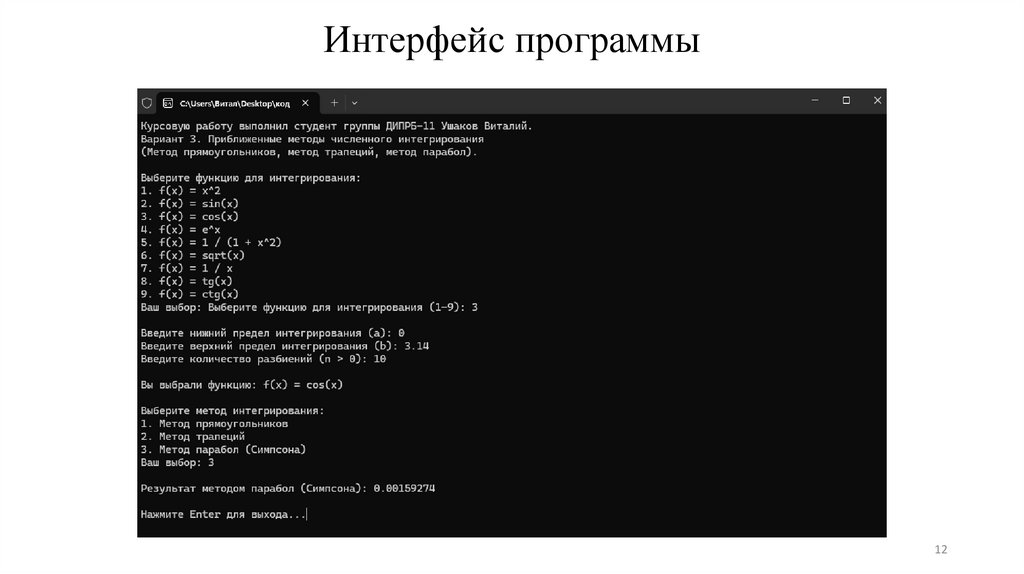 Курсовой проект на тему: Написать программу «Приближённые методы численного интегрирования»