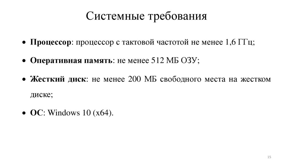 Системные требованияПроцессор: процессор с тактовой частотой не менее 1,6 ГГц;