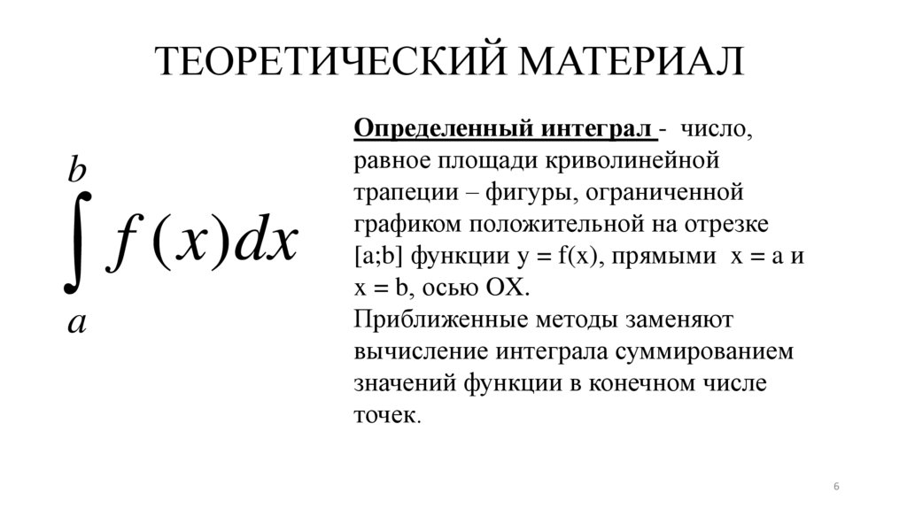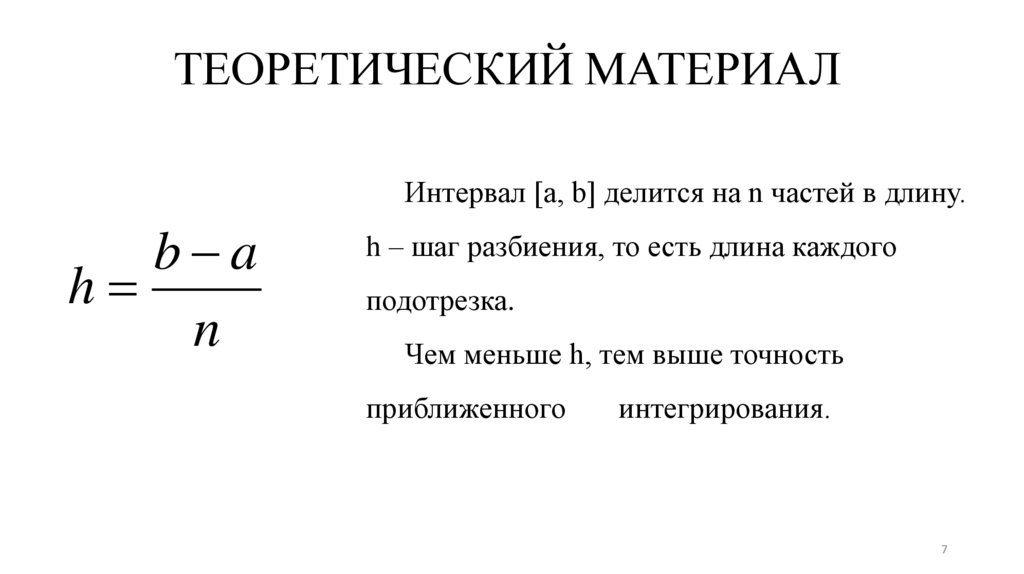 ТЕОРЕТИЧЕСКИЙ МАТЕРИАЛИнтервал [a, b] делится на n частей в длину.