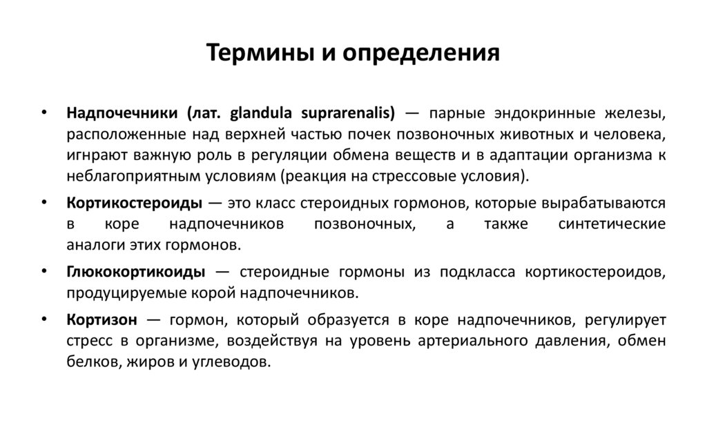 Термины и определенияНадпочечники (лат. glandula suprarenalis) — парные эндокринные железы,
