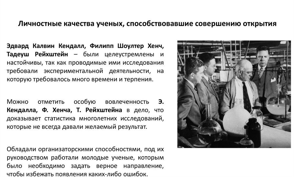 Личностные качества ученых, способствовавшие совершению открытияЭдвард Калвин Кендалл, Филипп Шоултер Хенч,