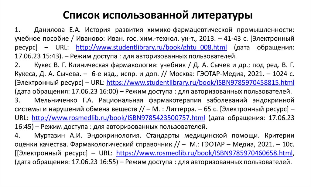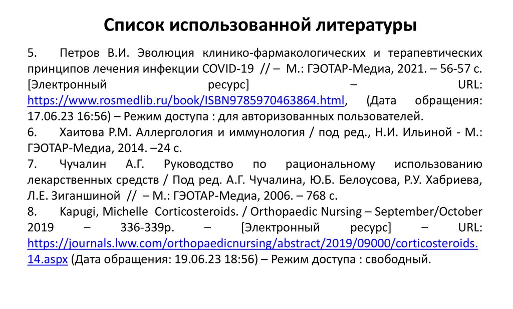 [[Электронный ресурс] – URL: https://www.rosmedlib.ru/book/ISBN9785970460658.html,