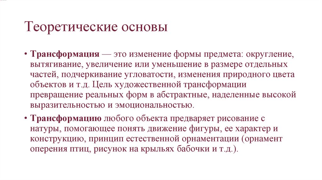 Теоретические основы• Трансформация — это изменение формы предмета: округление,