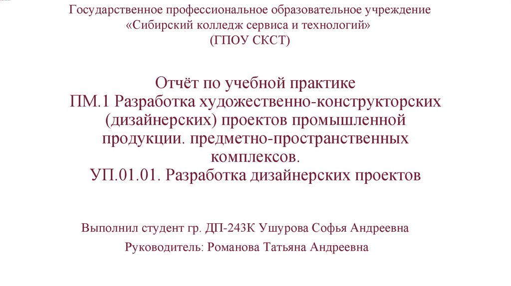 Отчёт по учебной практике ПМ.1 Разработка художественно-конструкторских (дизайнерских) проектов промышленной продукции