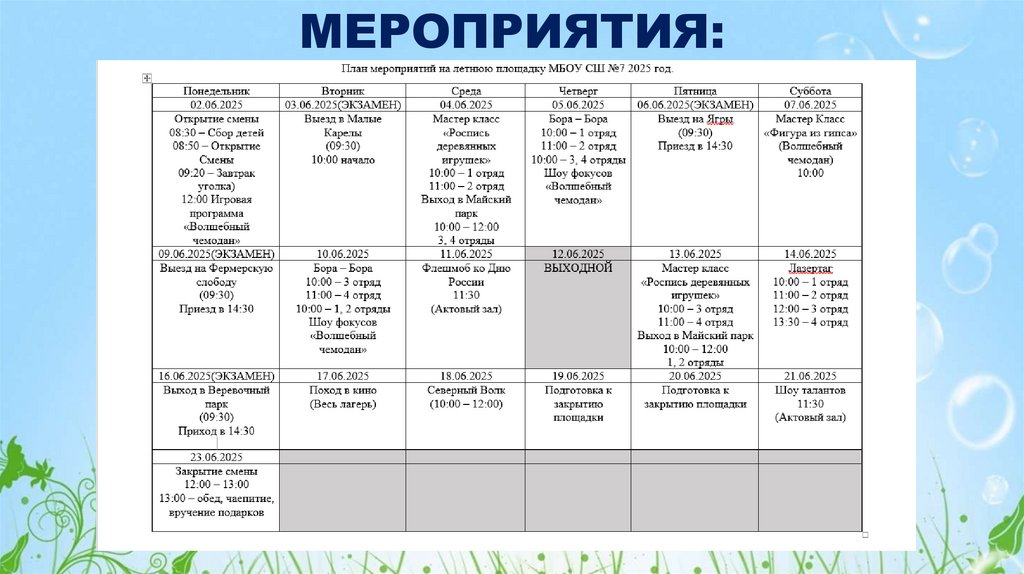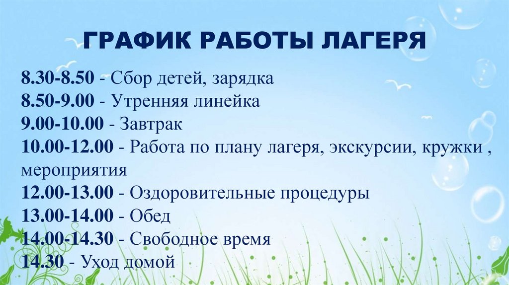 2. ГРАФИК РАБОТЫ ЛАГЕРЯ
