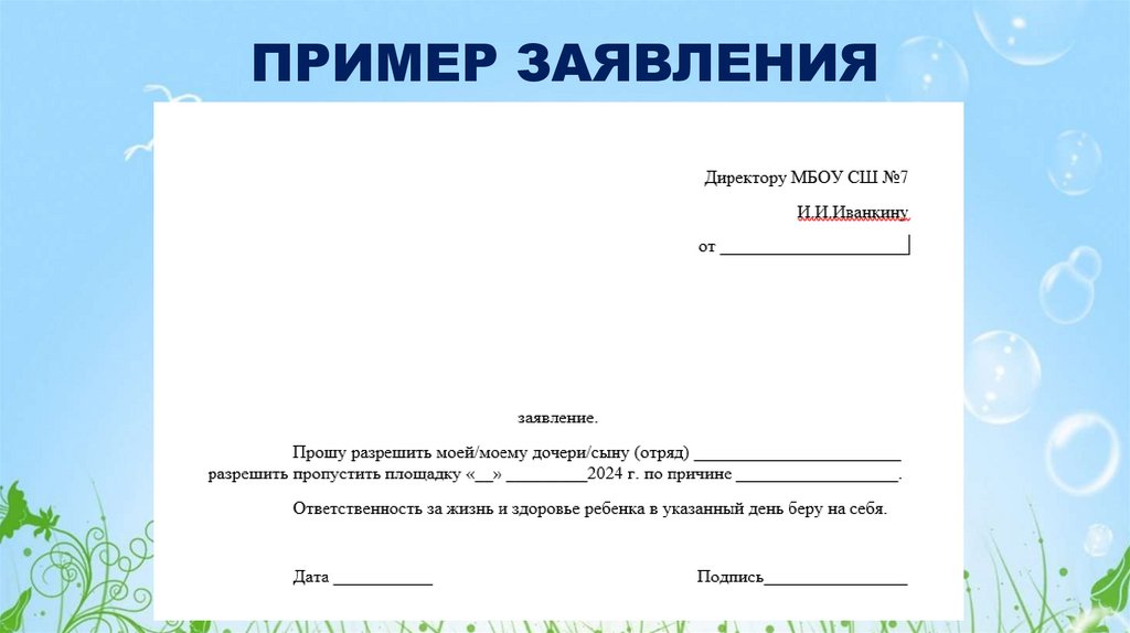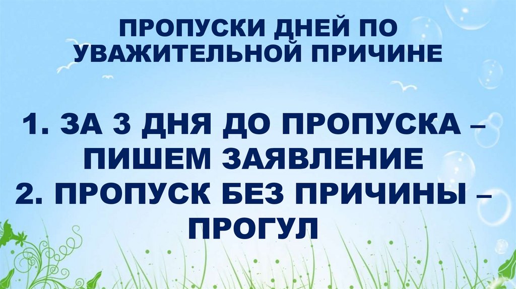 1. ЗА 3 ДНЯ ДО ПРОПУСКА –ПИШЕМ ЗАЯВЛЕНИЕ