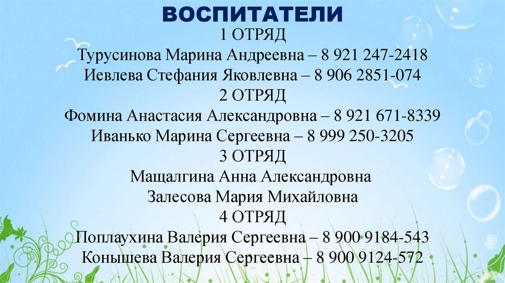1 ОТРЯДТурусинова Марина Андреевна – 8 921 247-2418