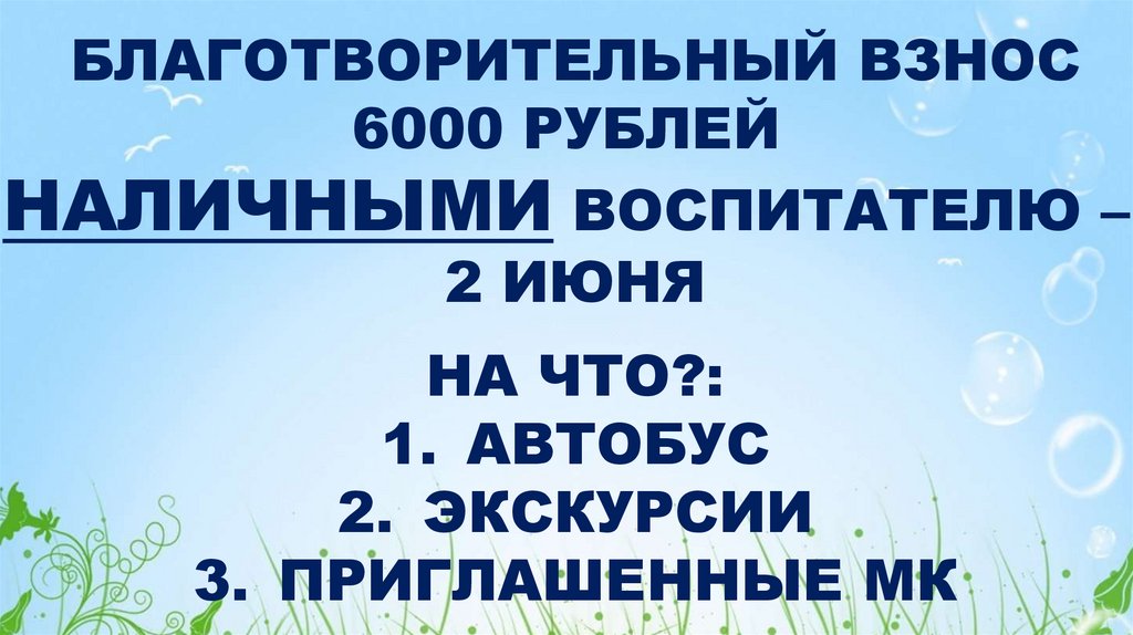 БЛАГОТВОРИТЕЛЬНЫЙ ВЗНОС6000 РУБЛЕЙ