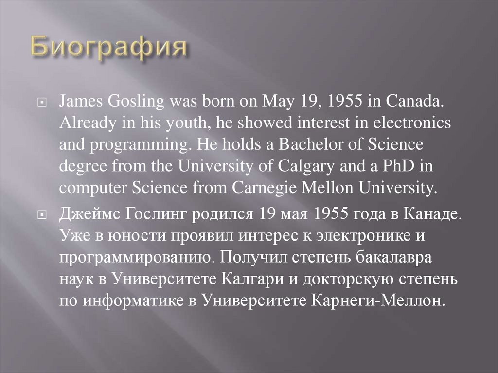 Джеймс Гослинг родился 19 мая 1955 года в Канаде.
