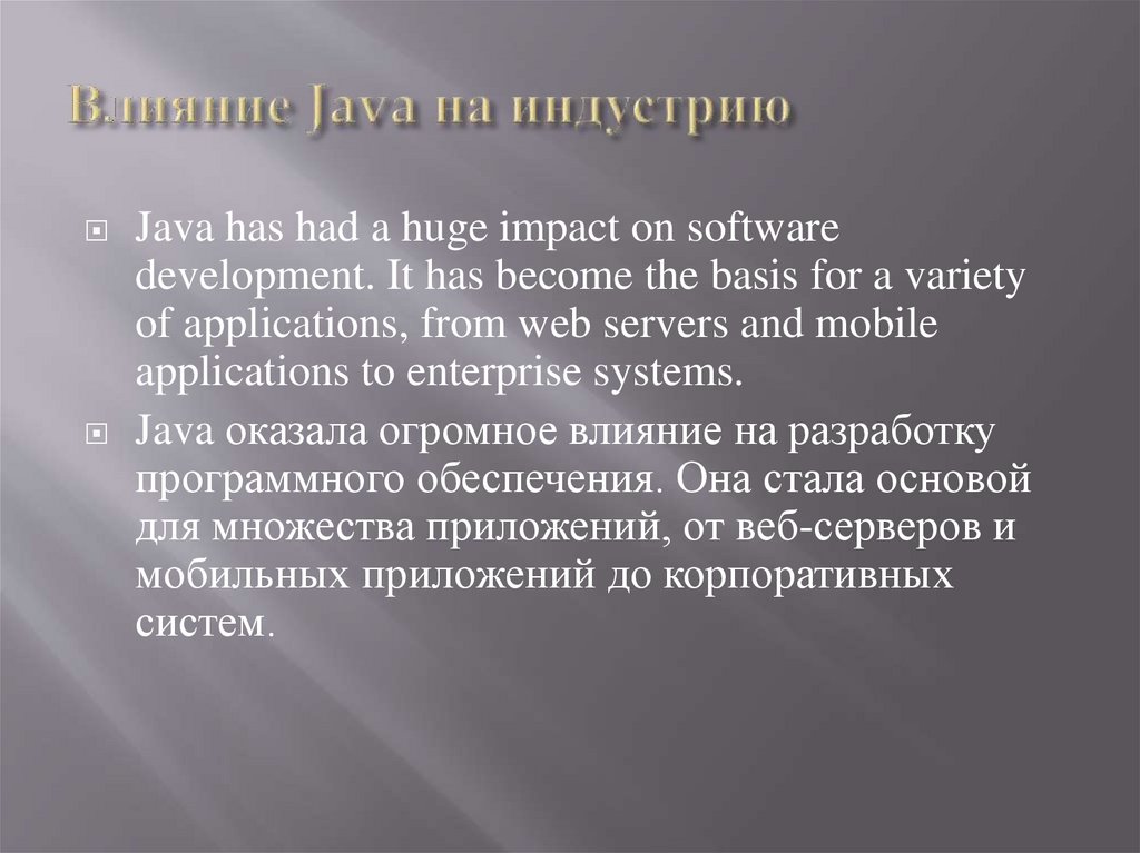 Java has had a huge impact on softwaredevelopment. It has become the basis for a variety