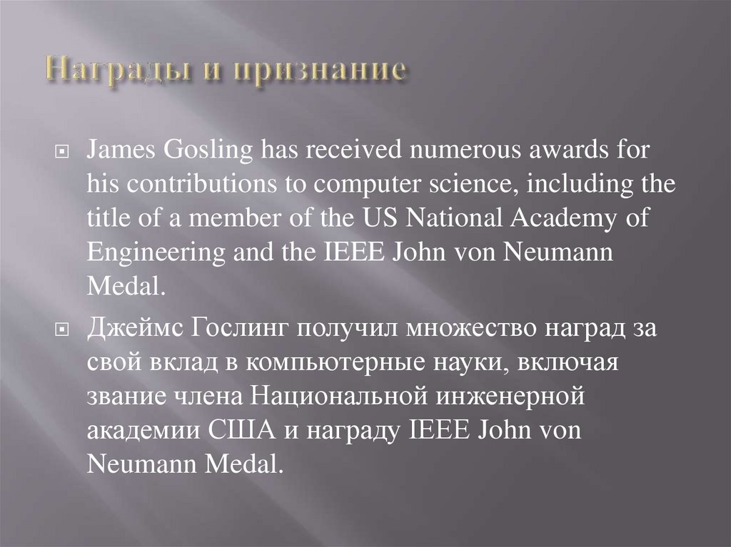 James Gosling has received numerous awards forhis contributions to computer science, including the