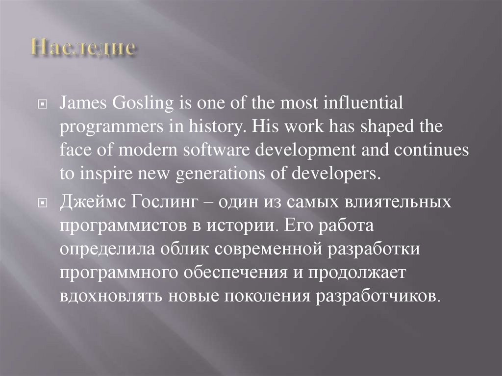 James Gosling is one of the most influentialprogrammers in history. His work has shaped the