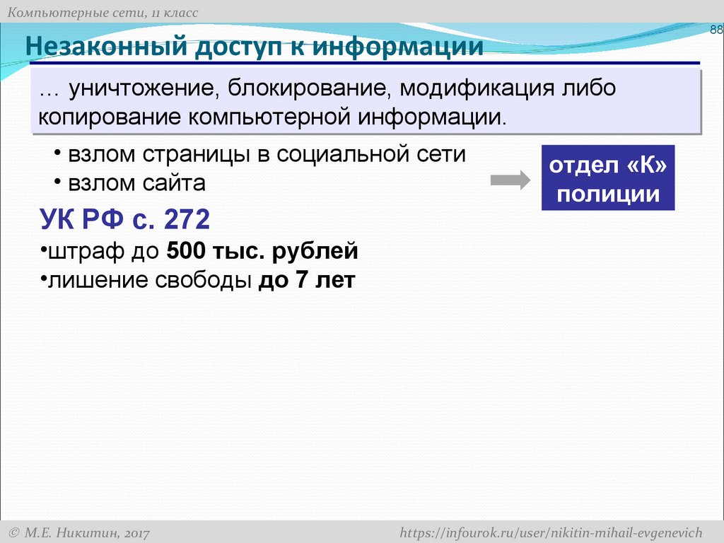 Компьютерные сети, 11 классНезаконный доступ к информации