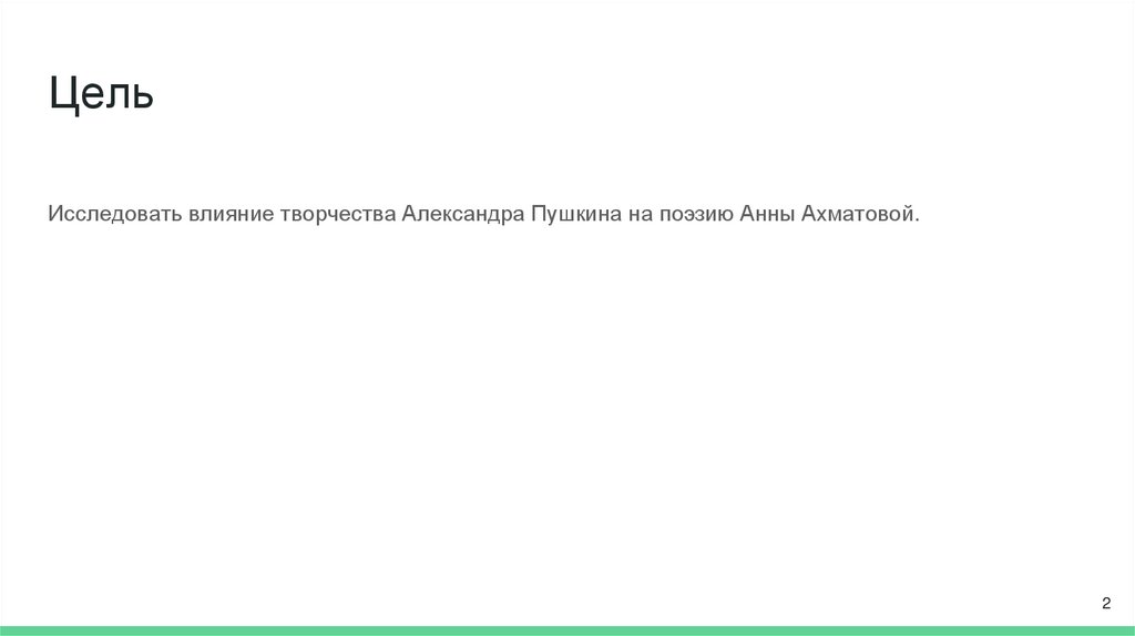 ЦельИсследовать влияние творчества Александра Пушкина на поэзию Анны Ахматовой.