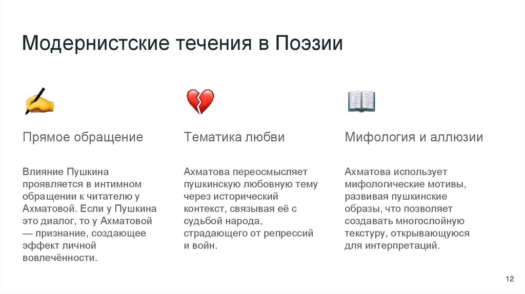 эволюцию русской поэзии от романтизма к модернизму. Их биографии и общие темы создают