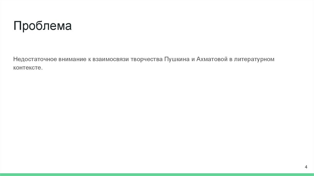 ПроблемаНедостаточное внимание к взаимосвязи творчества Пушкина и Ахматовой в литературном