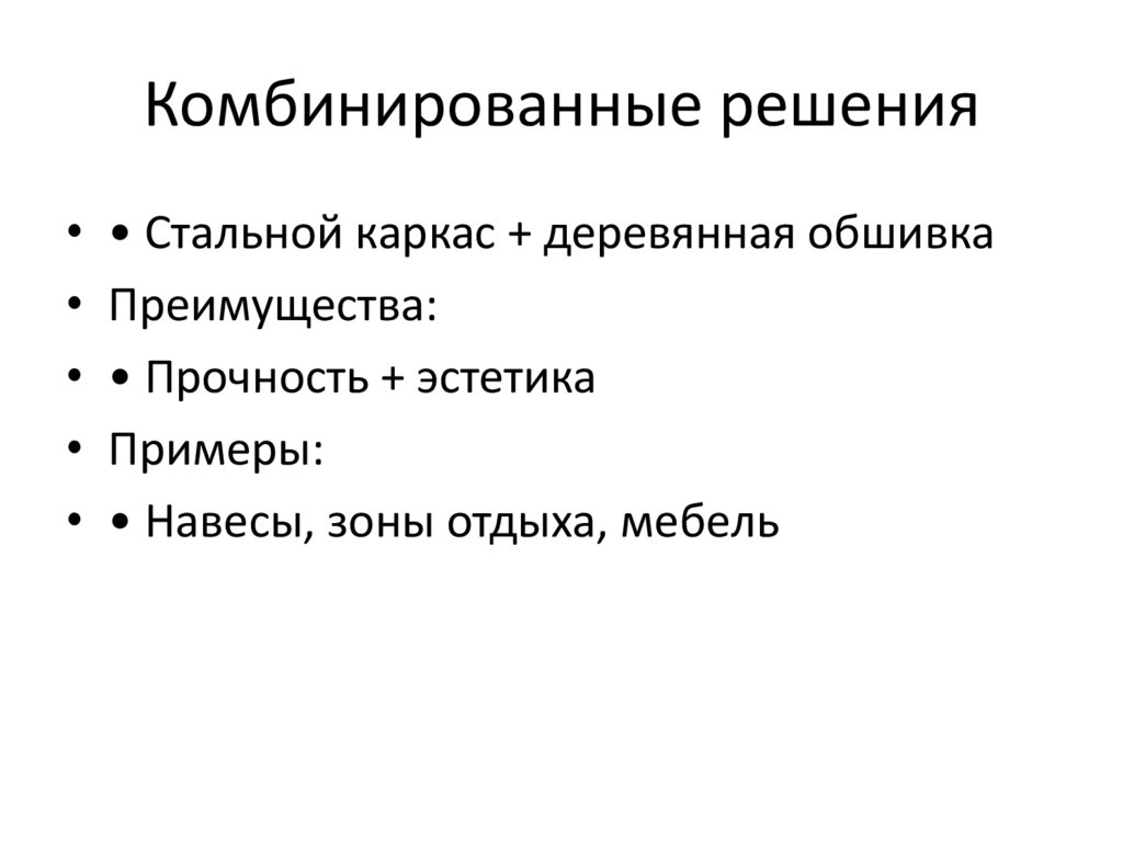 Комбинированные решения• • Стальной каркас + деревянная обшивка
