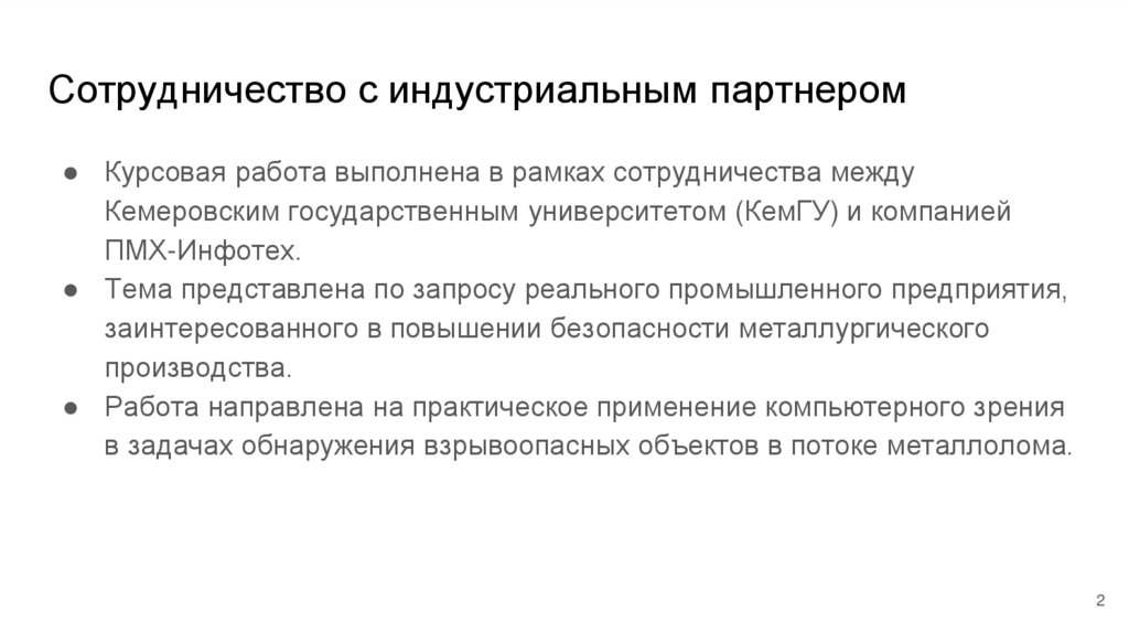 Сотрудничество с индустриальным партнером● Курсовая работа выполнена в рамках сотрудничества между
