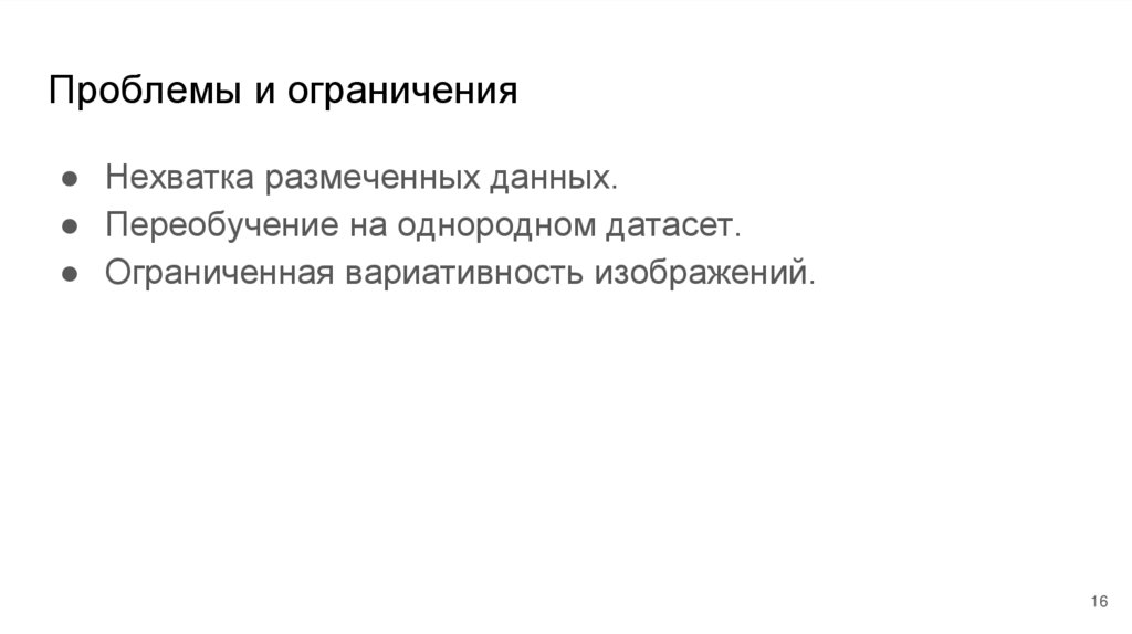 Проблемы и ограничения● Нехватка размеченных данных.