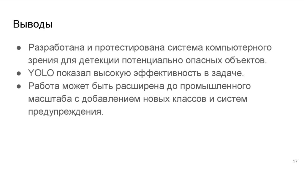 ● Работа направлена на практическое применение компьютерного зрения