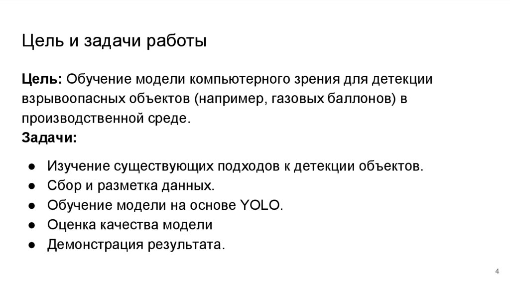 Цель и задачи работыЦель: Обучение модели компьютерного зрения для детекции