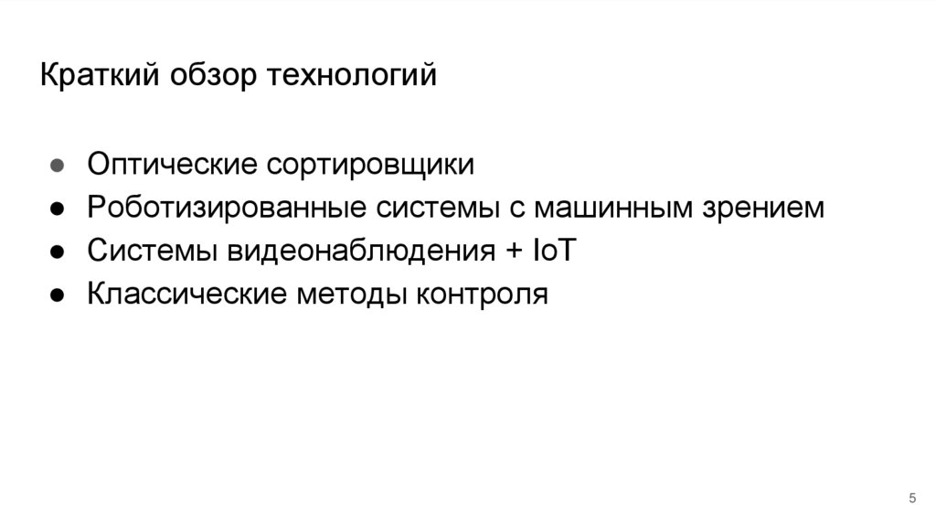 Краткий обзор технологий● Оптические сортировщики