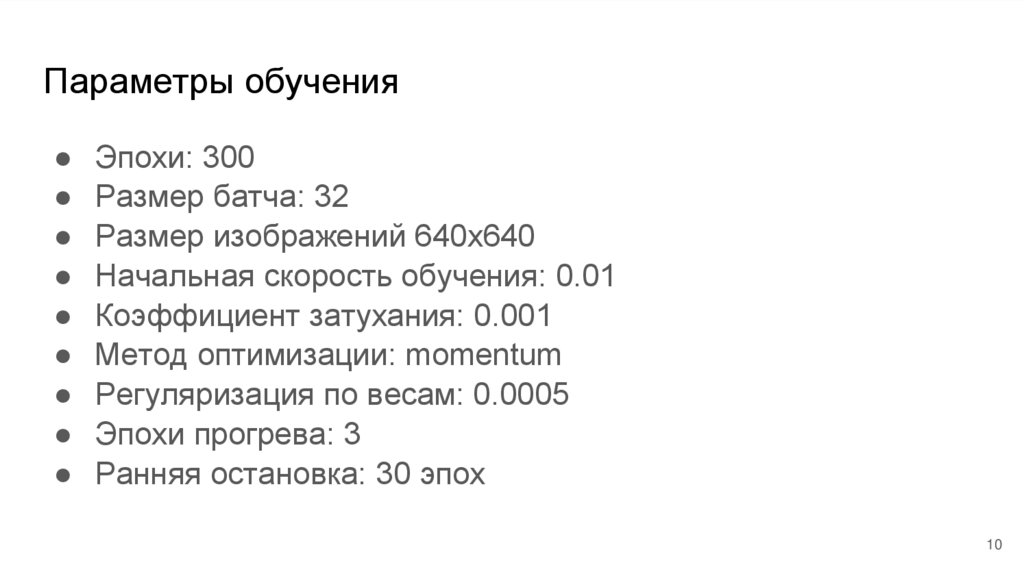 Параметры обученияЭпохи: 300