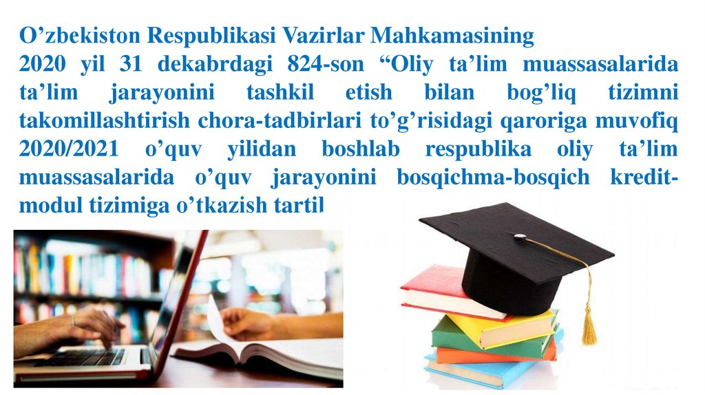 muassasalarida oʼquv jarayonini bosqichma-bosqich kreditmodul tizimiga oʼtkazish tartibi joriy etilgan.