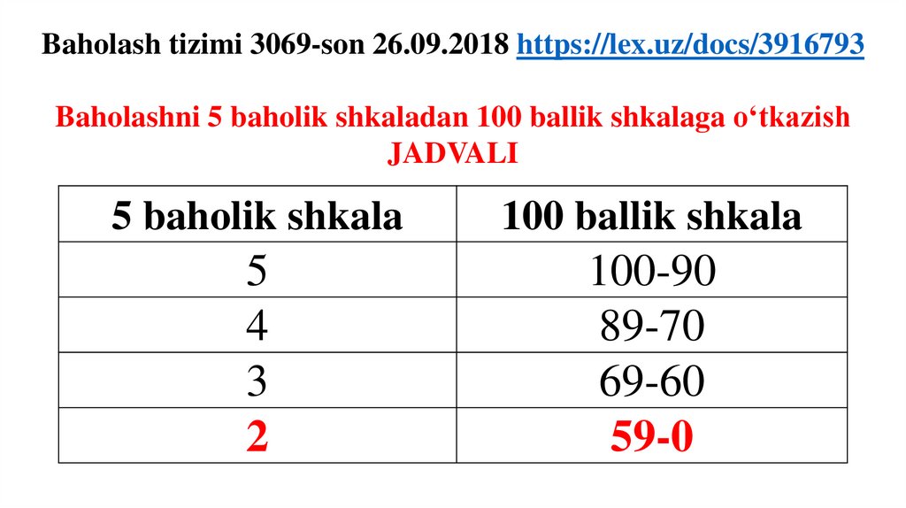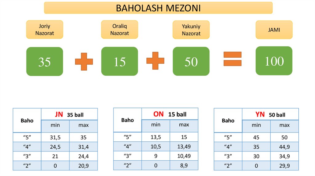 - talabalar bilimini reyting asosida baholash.