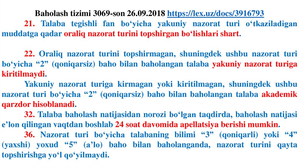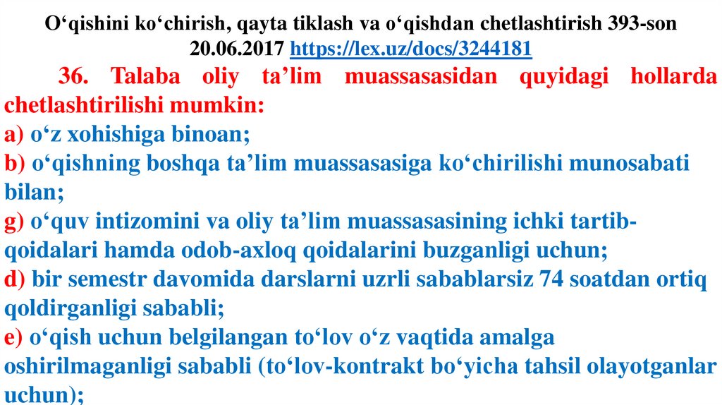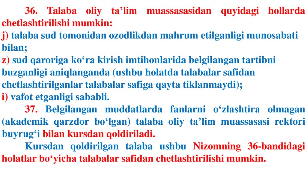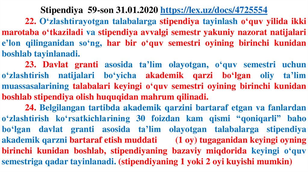 sohiblariga kelgusi o‘quv semestri mobaynida umumiy tartibda