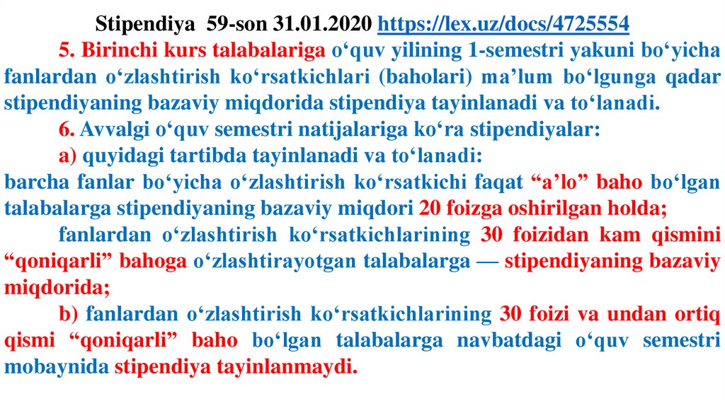 3. Stipendiyalarni tayinlash uchun quyidagi mezonlarni bajarish