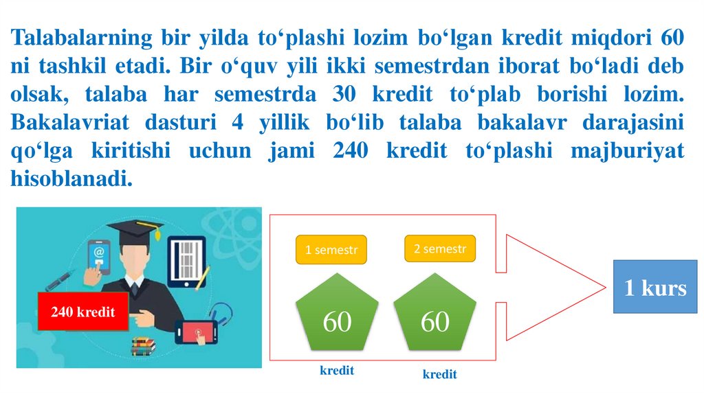 qo‘lga kiritishi uchun jami 240 kredit to‘plashi majburiyat