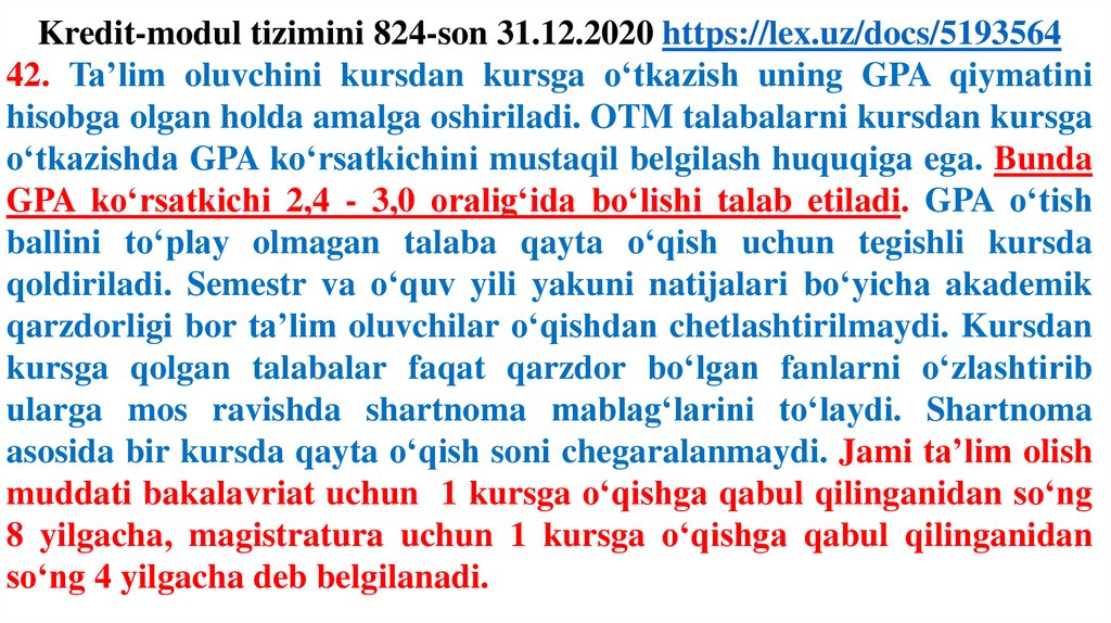 Oʼzbekiston Respublikasi Vazirlar Mahkamasining2020 yil 31 dekabrdagi 824-son “Oliy taʼlim muassasalarida