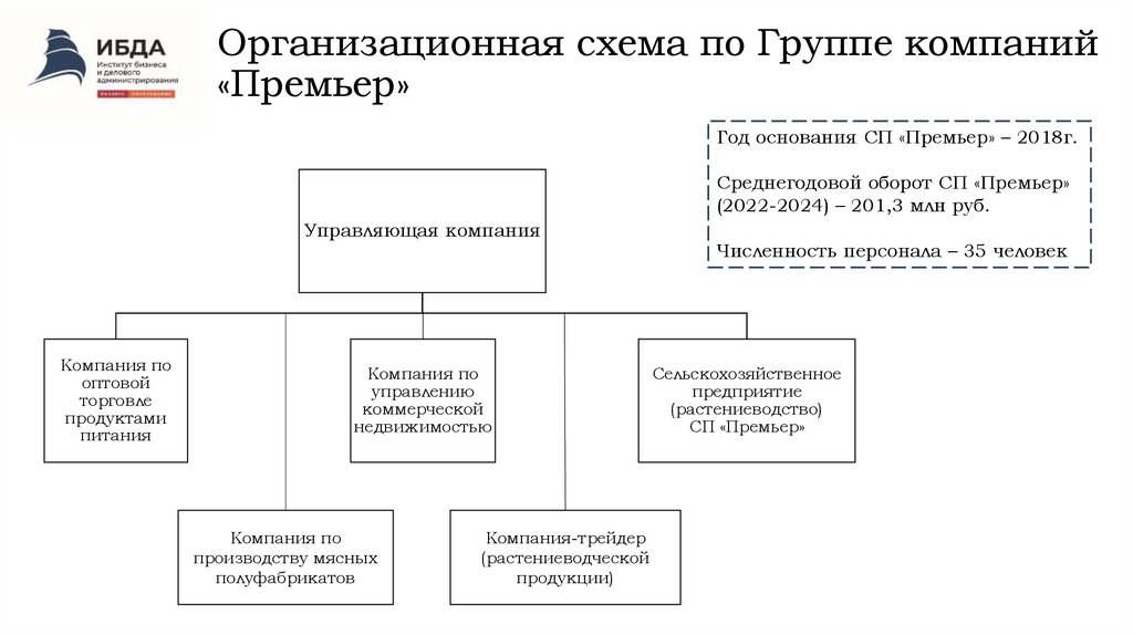 Год основания СП «Премьер» – 2018г.Среднегодовой оборот СП «Премьер»
