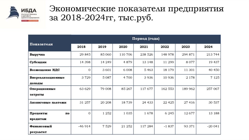 3. Экономические показатели предприятия за 2018-2024гг, тыс.руб.