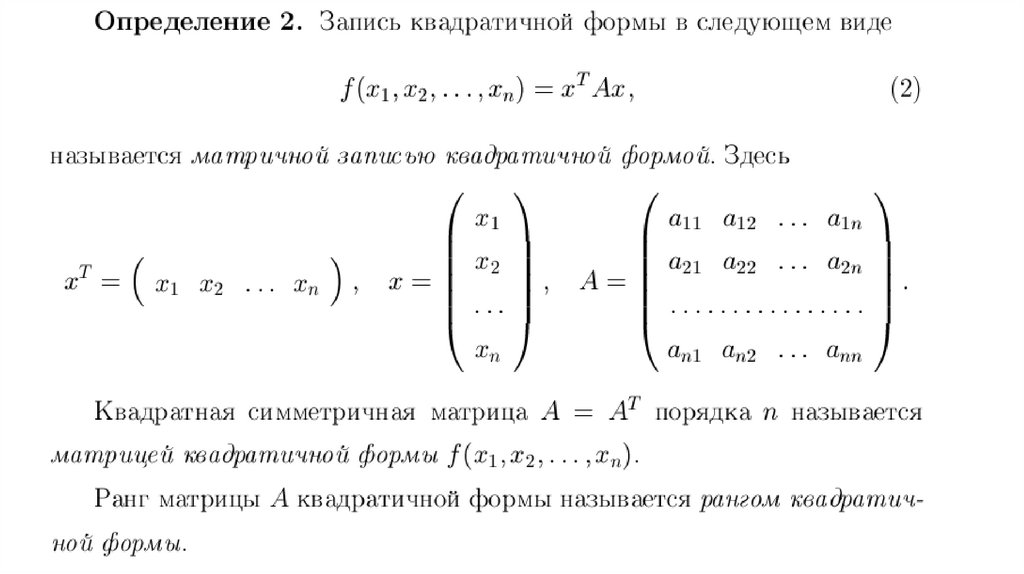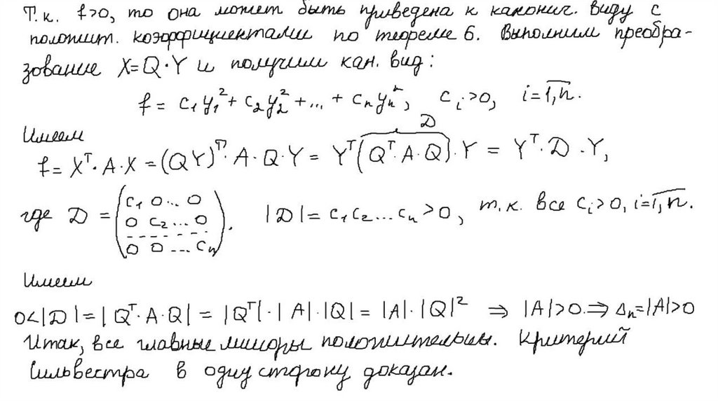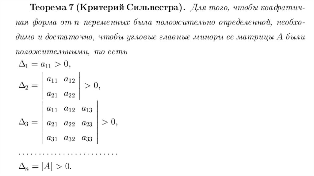 Квадратичные формы. Знакоопределенность форм. Критерий Сильвестра