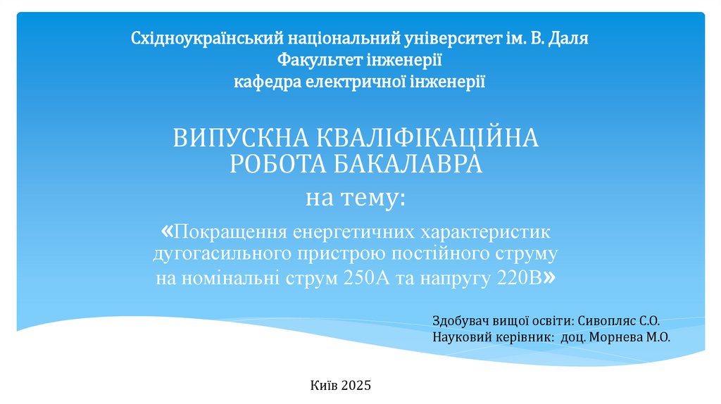 1. Східноукраїнський національний університет ім. В. Даля Факультет інженерії кафедра електричної інженерії
