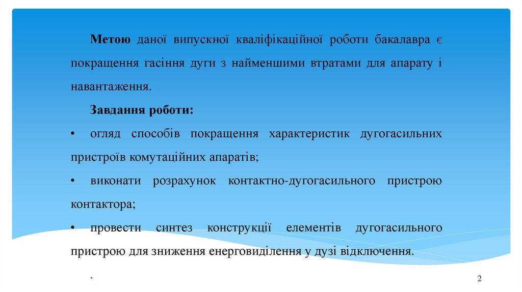 Метою даної випускної кваліфікаційної роботи бакалавра єпокращення гасіння дуги з найменшими втратами для апарату і