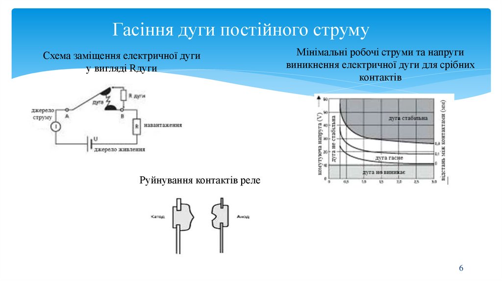 Гасіння дуги постійного струмуСхема заміщення електричної дуги