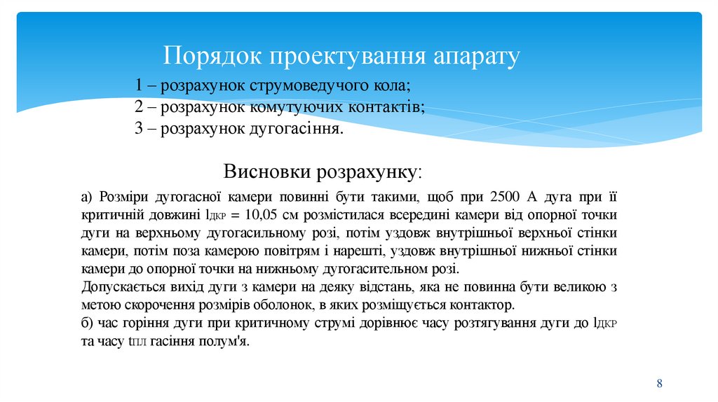 Порядок проектування апарату1 – розрахунок струмоведучого кола;