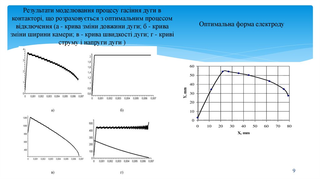 Результати моделювання процесу гасіння дуги вконтакторі, що розраховується з оптимальним процесом