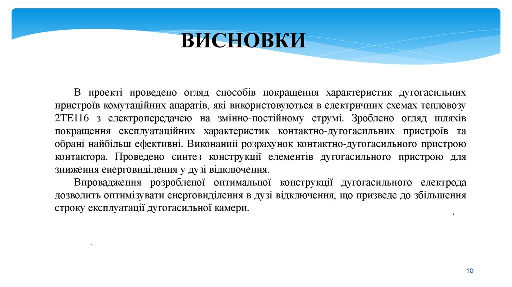 ВИСНОВКИВ проекті проведено огляд способів покращення характеристик дугогасильних