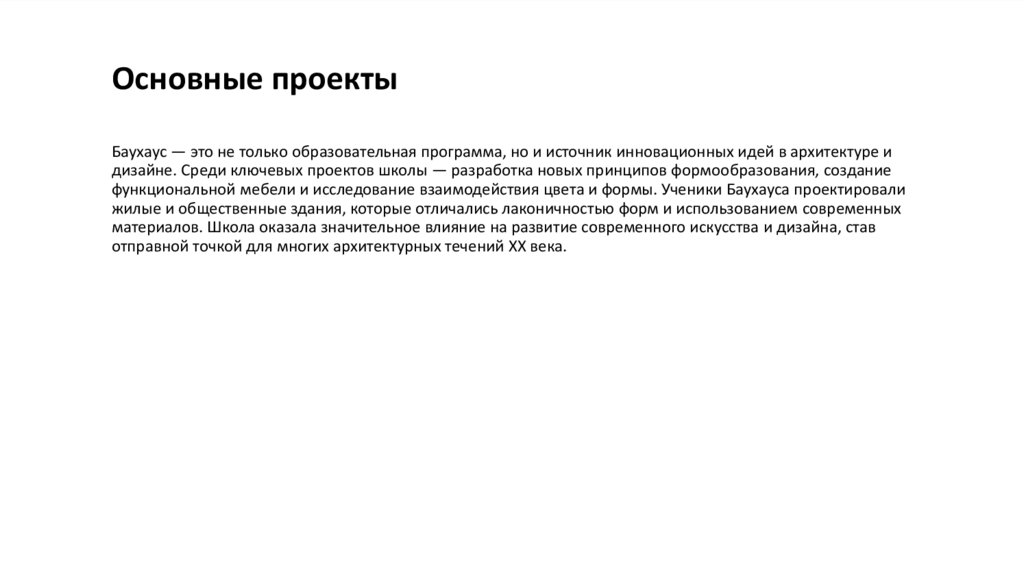 Основные проектыБаухаус — это не только образовательная программа, но и источник инновационных идей в архитектуре и