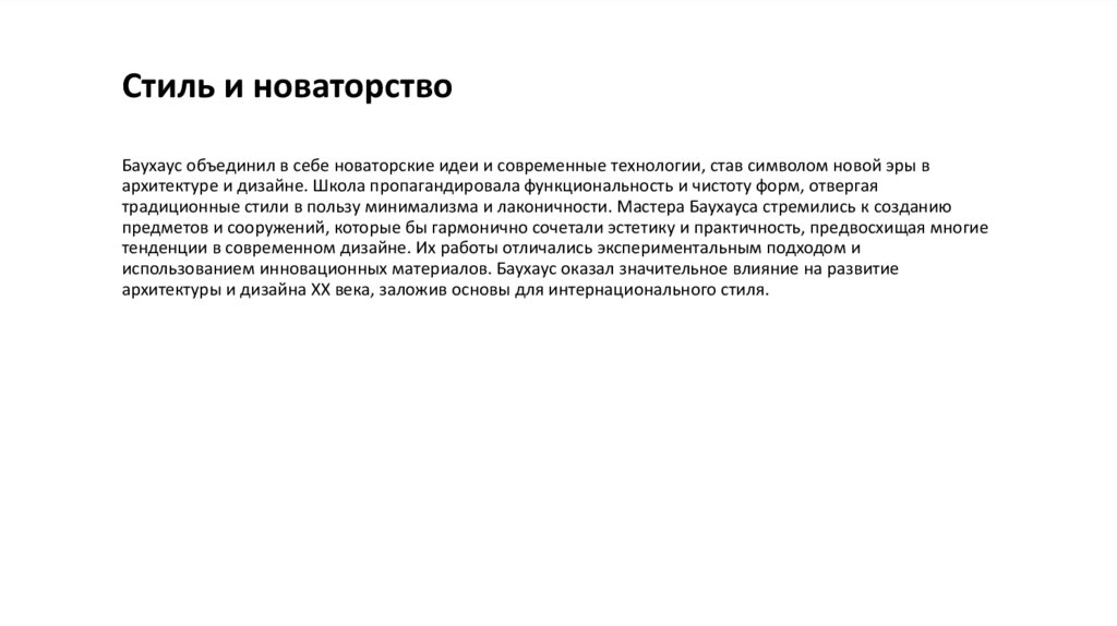 использованием инновационных материалов. Баухаус оказал значительное влияние на развитие