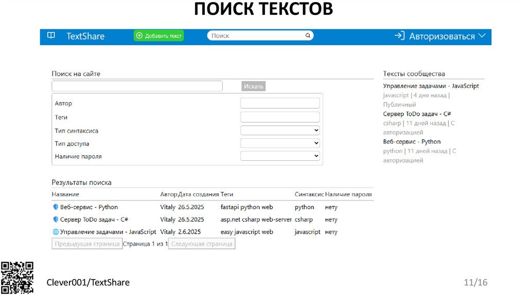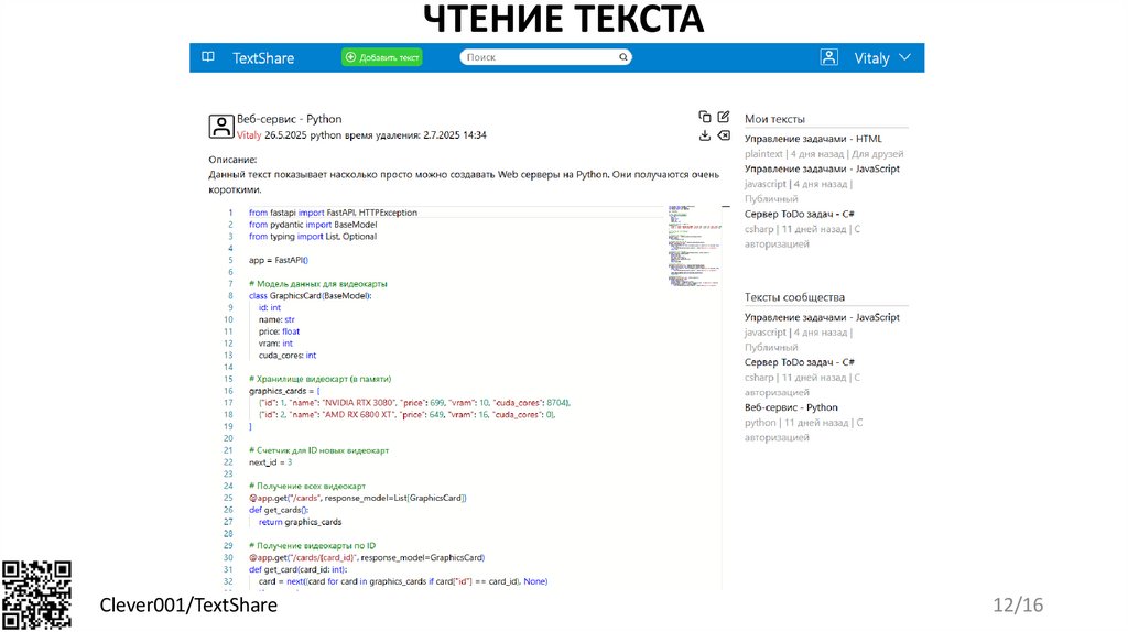 АРХИТЕКТУРА ВЕБ-СЕРВИСАClever001/TextShare