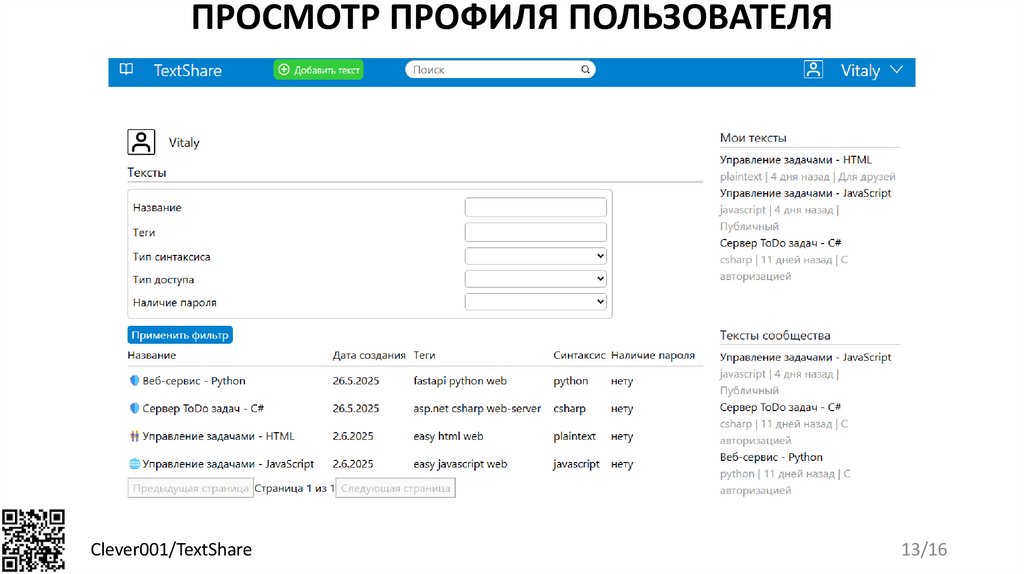 ПРОСМОТР ПРОФИЛЯ ПОЛЬЗОВАТЕЛЯClever001/TextShare